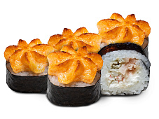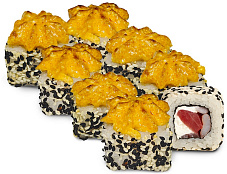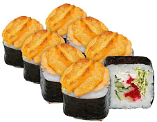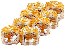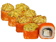 Состав: краб-крем, икра масаго, лосось, омлет Тамаго, соус Яки, соус унаги, кунжут