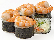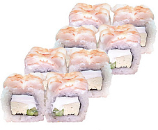 Состав: сыр сливочный, краб-крем, огурцы, креветки тигровые, соус тайский сладко-острый