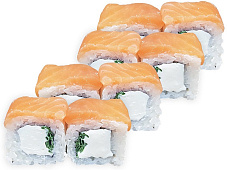 Состав: Лосось, сыр сливочный, соус сырный, соус унаги, кунжут