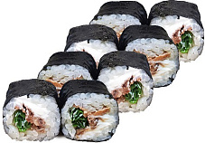 Состав: сыр сливочный, тартар из тунца, огурец, соус фирменный спайс