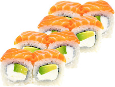Состав: сыр сливочный, лосось, окунь Изуми Дай, авокадо, угорь, кунжут, соус унаги